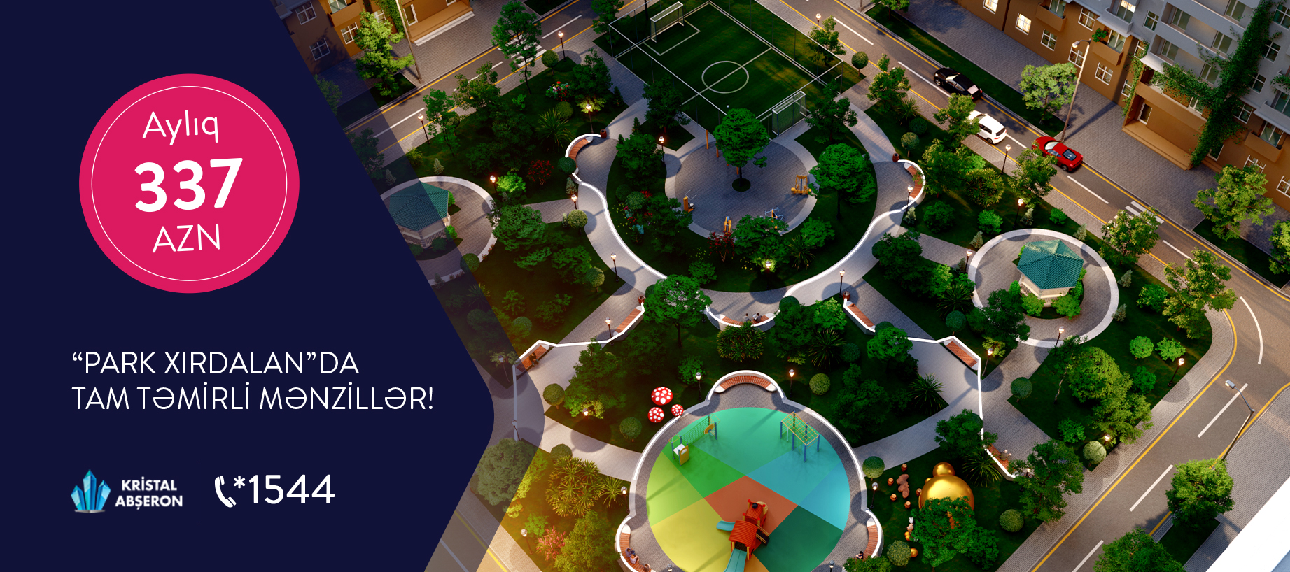 Kristal Abşeron "Park Xırdalan” yaşayış kompleksində kirayə qiymətinə mənzillər təqdim. Gündəlik ehtiyaclarınızı bütünlüklə özündə cəmləşdirən yaşayış kompleksində "Central Clinic” tibb mərkəzi, kompleksin geniş həyətində açıq və qapalı idman sahəsi, fitnes mərkəzi, uşaqlar üçün oyun parkı, uşaq bağçası fəaliyyət göstərir.