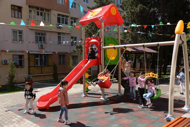 Sakinlərin asudə vaxtlarının səmərəli təşkili üçün binaların həyətinə söhbətgah və oturacaqlar qoyulub, müxtəlif növ uşaq oyun elementləri və idman qurğuları quraşdırılıb.