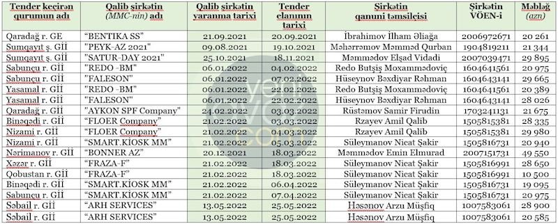 Onu da qeyd edək ki, bu tenderlərin əksəriyyəti Fərid Qayıbov nazir təyin olunduqdan (7 sentyabr 2021-ci il) sonra həyata keçirilib. Nazirliyin tender müsabiqələrində “gənc” şirkətlər qalib elan edilir.