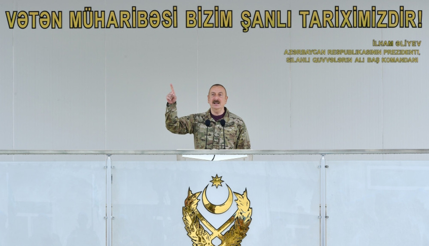 Vətən müharibəsində Ermənistanı məğlub etməyimiz onlar üçün dərs olmalıdır. Onlar hesab edirdilər ki, orduları məğlubedilməzdir və öz orduları haqqında olmayan şayiələri yayırdılar. Biz göstərdik ki, onlar Azərbaycan Ordusu qarşısında duruş gətirə bilməzlər. Onlar bəyan edirdilər ki, Azərbaycan öz torpaqlarını heç vaxt silahlı yollarla ala bilməz. Çünki həm qurulmuş istehkamlar, həm 30 il ərzində mühəndislik işlərinin aparılması, həm də ki, bu bölgənin coğrafiyası onlar üçün çox əlverişli idi. Biz bu mifi də dağıtdıq və göstərdik ki, güclü iradə olan yerdə, xalq-iqtidar birliyi olan yerdə, hərbçilərin vətənpərvərliyi olan yerdə heç kim bizim qabağımızda dura bilməz. Əgər yenə də Ermənistanda revanşist qüvvələr baş qaldırsa, bilməlidirlər ki, onları nələr gözləyir”, - Prezident İlham Əliyev qeyd edib.