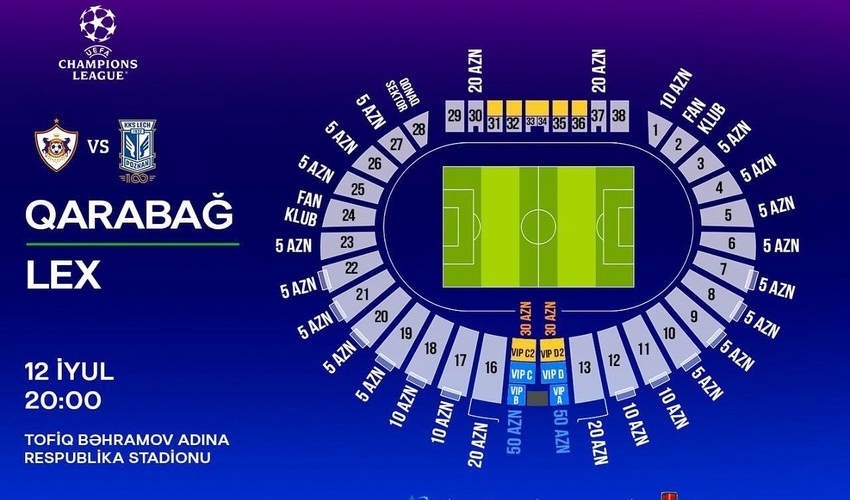 "Qarabağ" Bakıda Polşa "Lex"inə qarşı keçirəcəyi UEFA Çempionlar Liqasının I təsnifat mərhələsinin cavab oyunu üçün biletləri satışa çıxarıb.