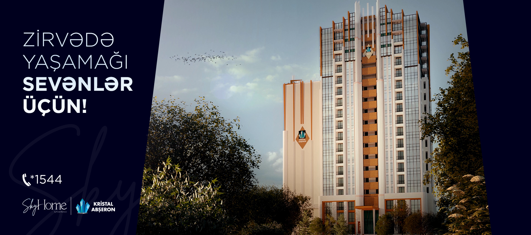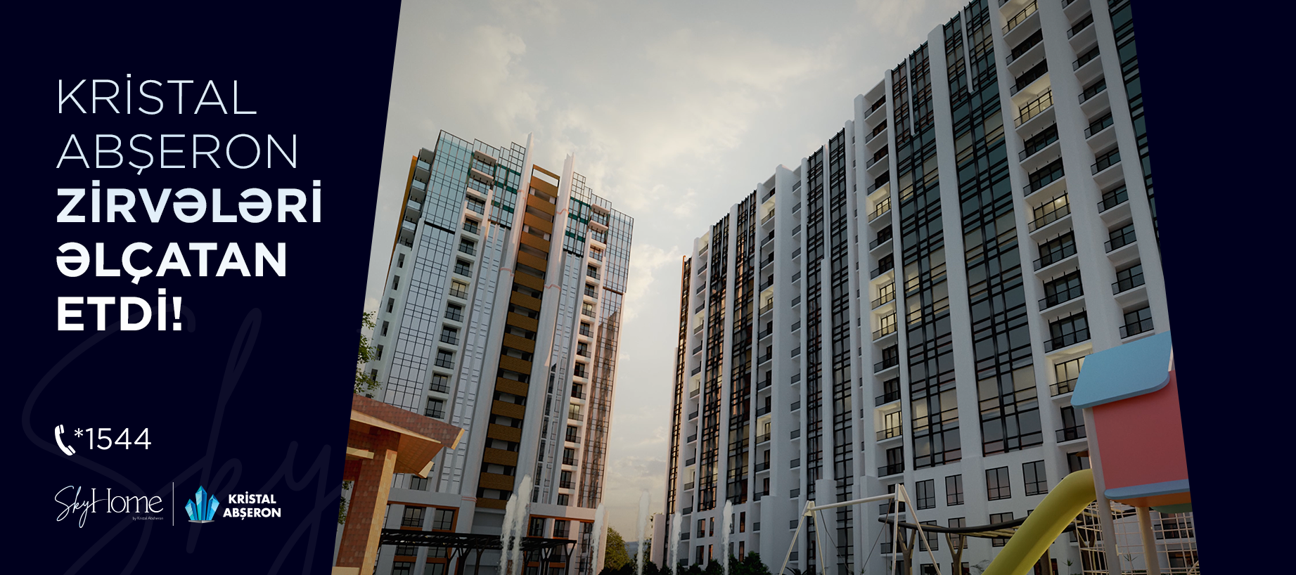 Kristal Abşeron müasir memarlığın zirvəsi olan "SkyHome” layihəsində sərfəli şərtlərlə mənzillər təklif edir. "SkyHome” Bakı şəhərinin ən görkəmli yerlərindən sayılan Tbilisi prospekti və Yasamal parkının yaxınlığında yerləşir. Gözlərinizin və ruhunuzun dincələcəyi bu məkanda tam təmirli və çıxarışlı mənzilləri 20 ilədək kredit imkanları ilə əldə etmək mümkündür.![]()