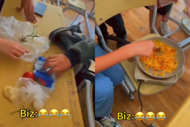 Məktəbdə daha bir inanılmaz hadisə: Şagirdlər dərs otağında pomidor-yumurta bişirdilər - VİDEO