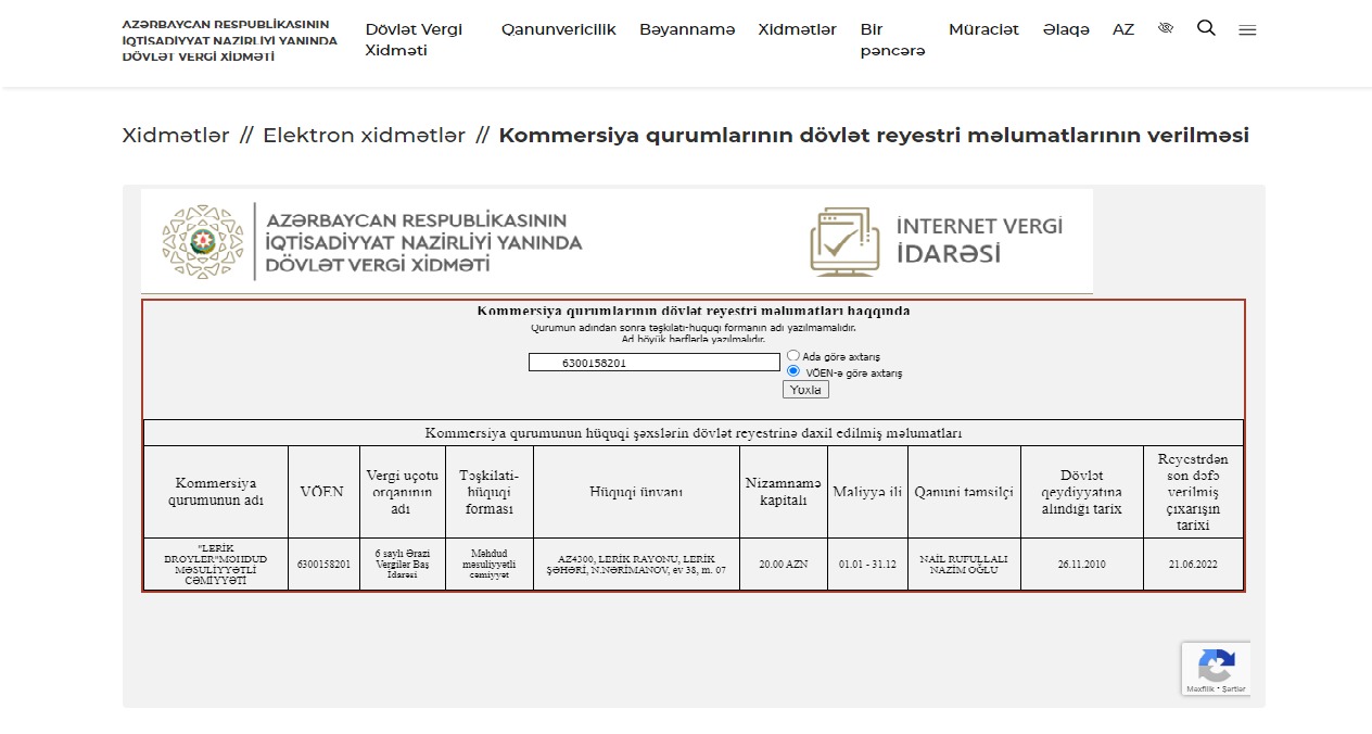 Qeyd edək ki, Vergilər Nazirliyinin reyestr məlumatlarına əsasən, "Lerik Broyler” MMC 26 noyabr 2010-cu il tarixdə dövlət qeydiyyatına alınıb. Hüquqi ünvanı Lerik şəhəri, Nəriman Nərimanov küçəsi, ev 38, mənzil 7-də yerləşir. Nizamnanə kapitalı 20 manat olan MMC-nin qanuni təmsilçisi əvvəllər deputatın qardaşı oğlu Nərimanlı Orxan Çingiz oğlu olub. Hazırda ünvan dəyişməsə də, qanuni təmsilçi Nail Rufullalı Nazim oğludur. O, Lerikdəki "Relax" MMC-də otel, satış meneceri və mühasib, Astaradakı "Relax Beach”də administrator işləyib.![]()