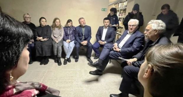 Ştaynmayerin mətbuat katibi Serstin Qammelinin sözlərinə görə, Almaniya prezidenti onunla ilə eyni sığınacaqda qalan Koryukovka sakinləri ilə danışıb.