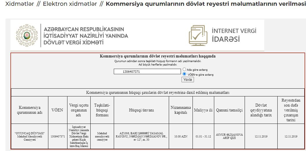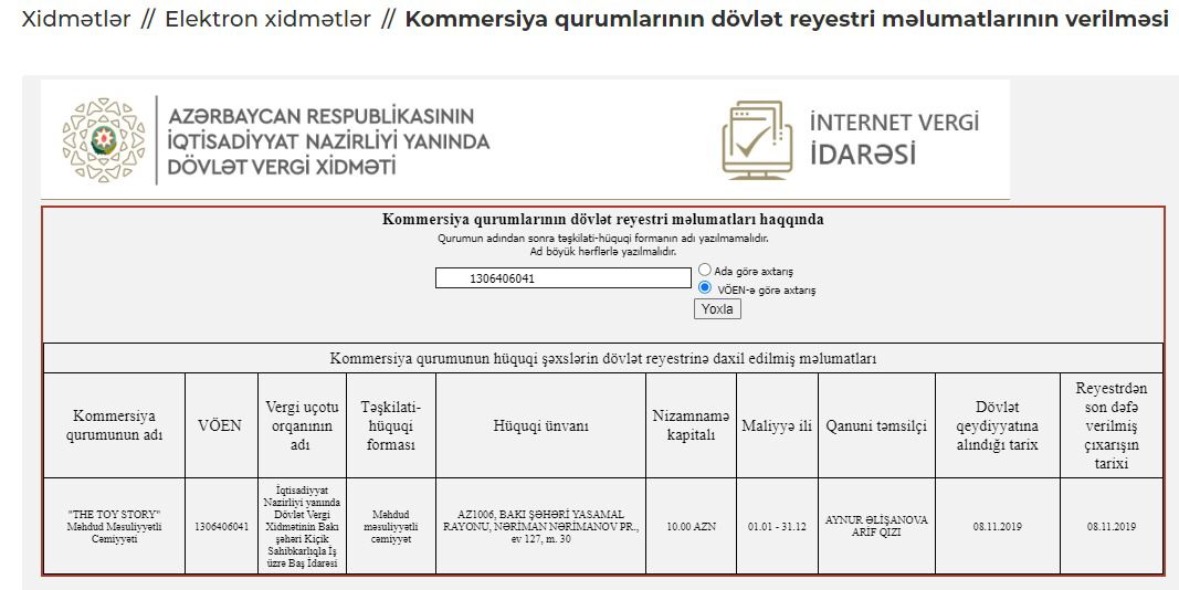 Kommersiya hüquqi şəxslərin reyestrinə əsasən, bütün şirkətləri - “TPDN”, “Oyuncaq Dünyası”, “H2A Studio”, “Dinamo-Qarabağ” və “The Toy Story” eyni ünvanda qeydiyyata alınıb.![]()