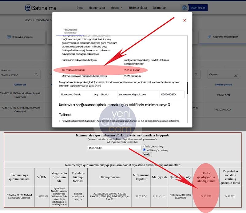 Qeyd edək ki, “Family 22 FN” MMC tender elanından bir ay əvvəl – 04.10.2022-ci il tarixində dövlət qeydiyyatına alınıb. Gəncə Tibb Kolleci isə müsabiqəni 11.11.2022-ci il tarxində elan edib.![]()