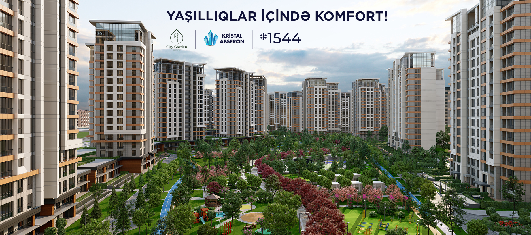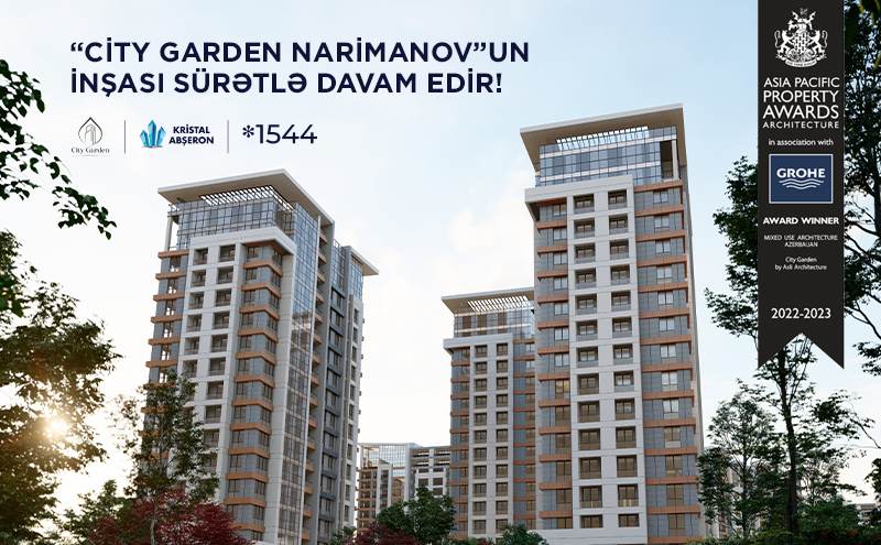 Kristal Abşeron imzası daşıyan və dünyanın ən nüfuzlu müsabiqəsinin qalibi seçilən "City Garden Narimanov” layihəsinin birinci kvartalında bütün binaların tikintisi sürətlə davam edir. Tezliklə ikinci kvartalın inşasına başlanacaqdır.![]()
