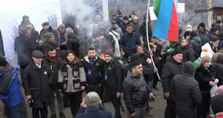 Etirazçılar Xankəndiyə gedən yolu kəsərək Qarabağ iqtisadi rayonunda müvəqqəti yerləşdirilmiş Rusiya sülhməramlı qüvvələrinin komandanını tələb edirlər...