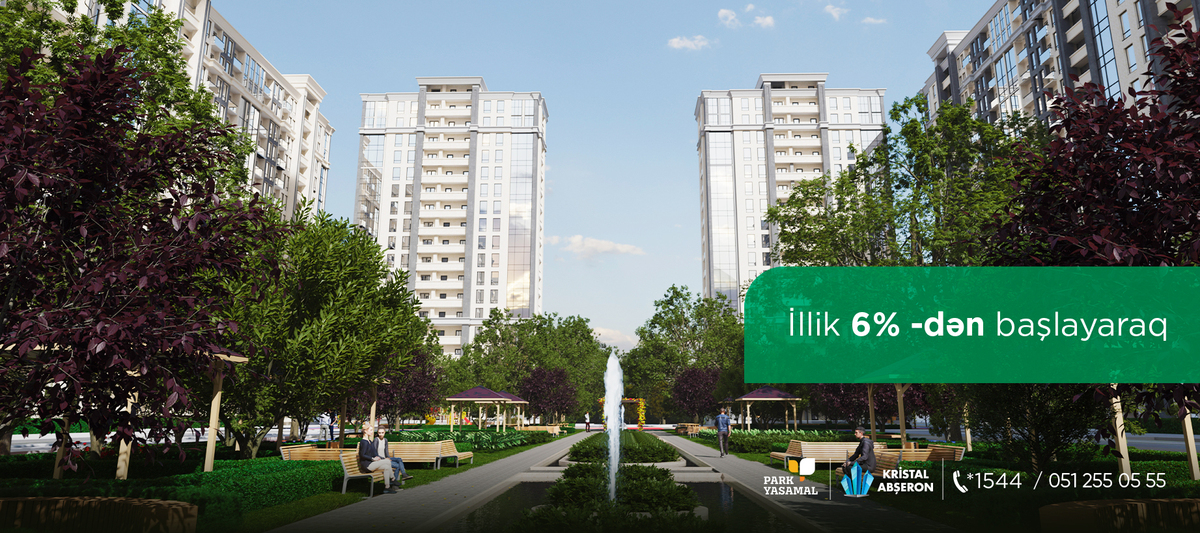 Son olaraq qeyd edək ki, sözügedən ərazidə hazırda Kristal Abşeron tərəfindən icra olunan Park Yasamal layihəsinin satışı sürətlə davam edir. Siz də illik 6%-dən başlayan ipoteka krediti ilə Park Yasamalda göl mənzərəli, tam təmirli mənzilə sahib olmağa tələsin!![]()