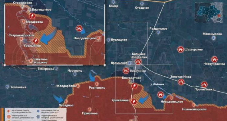 Kanalın admini hesab edir ki, Ukrayna ordusu Urojaynoye və Bolşaya Novoselkadan demək olar ki, sinxron hücuma keçirlər və “Vremyevski çıxıntısı” ərazisində rus qoşunlarının arxasına soxulmağa çalışır. Telekanalın məlumatına görə, nəticədə Ukrayna Silahlı Qüvvələri “Vremyevski çıxıntısı” ərazisində Neskuchnoye və Blagodatnoye kəndlərini faktiki olaraq döyüşmədən ələ keçiriblər. “DNR”in “Kaskad” teleqramı isə yazıb ki, Rusiya qüvvələri mühasirəyə düşmək təhlükəsinə görə geri çəkilib.