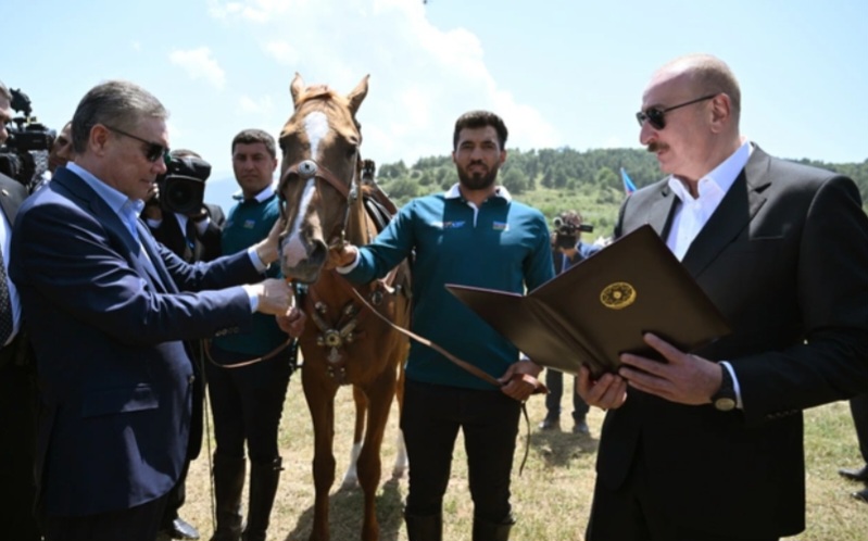 İlham Əliyev Qurbanqulu Berdiməhəmmədova Qarabağ atı hədiyyə etdi