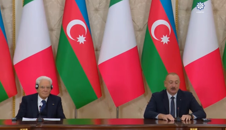 Hazırda Azərbaycan Prezidenti İlham Əliyev və İtaliya Prezidenti Sercio Mattarella mətbuata bəyanatlarla çıxış edirlər.