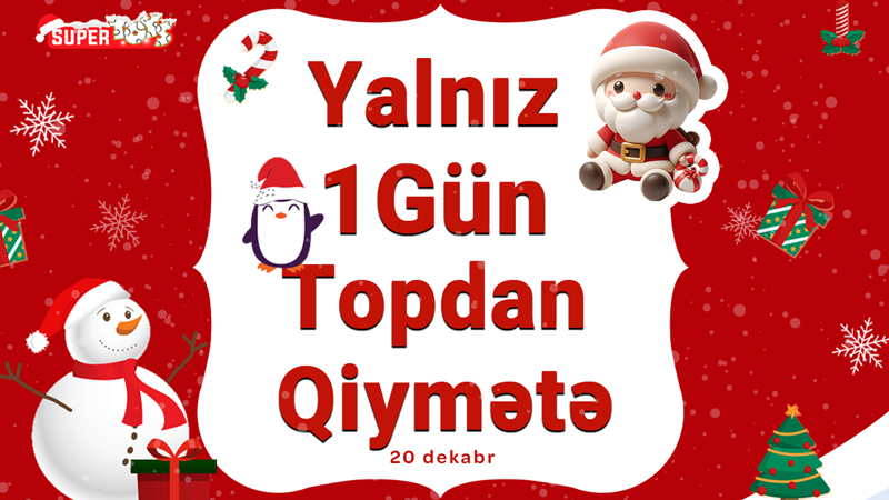 "Supertoys” mağazalarında 20 dekabr tarixində bütün Yeni il məhsulları topdan qiymətə satılacaq.Kampaniyada müxtəlif yolkalar, Şaxta baba çeşidləri, yolka oyuncaqları, yeni il süfrələri, yolka aksesuarları, müasir dövrün trendi olan şelkunçiklər, kreativ yeni il şamları, dekor işıqlar, hədiyyə qutuları, müxtəlif ölçüdə suvinerləri əldə etmək mümkündür.